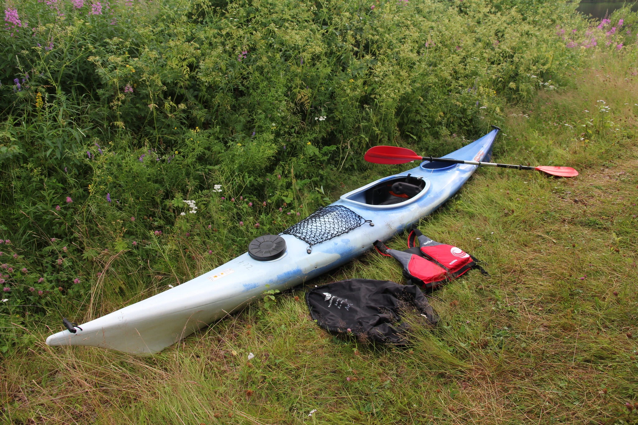 Sininen yhden hengen Artik-kajakki. Sopii kaikentasoisille melojille. Tilavampi istuma-aukko. Vuokraus sisältää aukkopeitteen, melan ja kelluntaliivit.