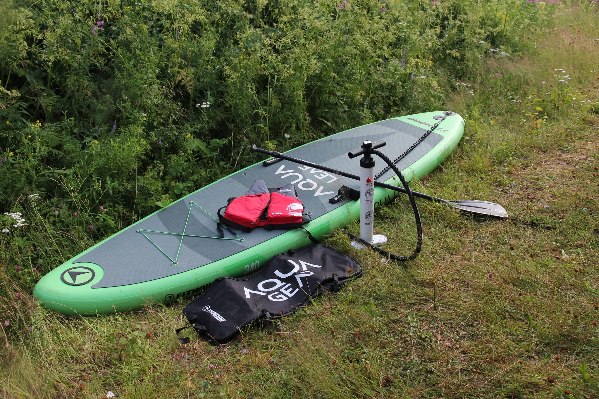 FitNordin Aqua Leaf -merkkinen SUP-lauta. Sopii kaikentasoisille suppailijoille, on myös aloittelijaystävällinen ja vakaa leveän rakenteen takia mutta liikkuu kuitenkin ketterästi pitkiäkin matkoja. Pohjassa on irrotettava evä. Lauta kantaa pumpattuna 200 kg. Laudan koko pumpattuna on 90 cm x 340 cm x 15 cm. Vuokraan kuuluu lauta, karkuremmi, pumppu, kantoreppu, säädettävä mela ja pelastusliivit.
